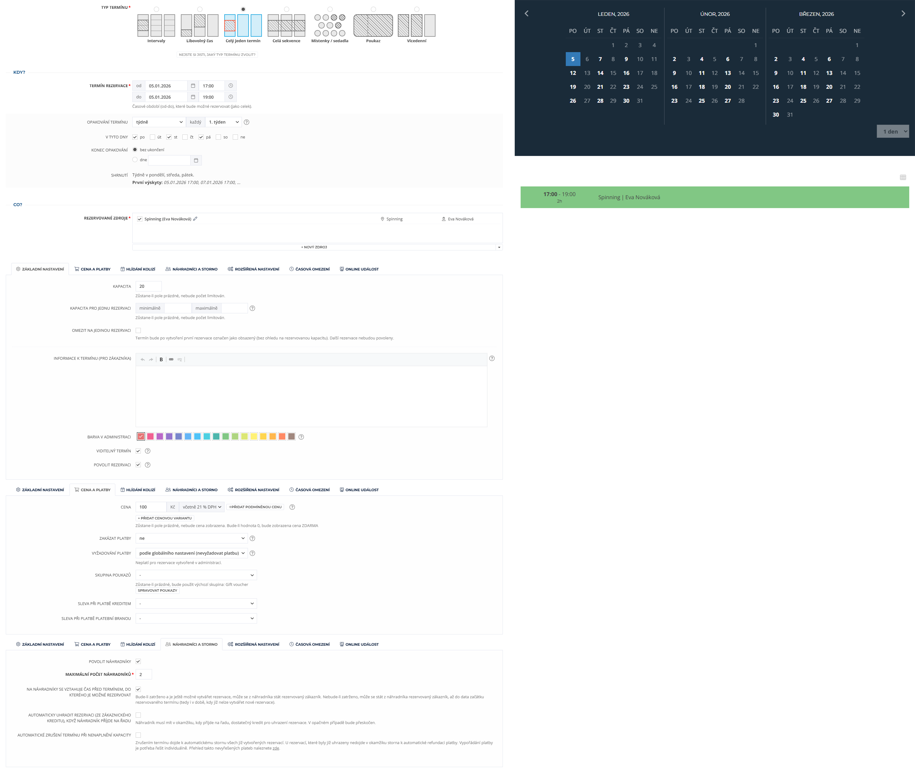 U tohoto typu termínu je podporována také možnost vytvoření více rezervací najednou, tzv. opakovaných rezervací.